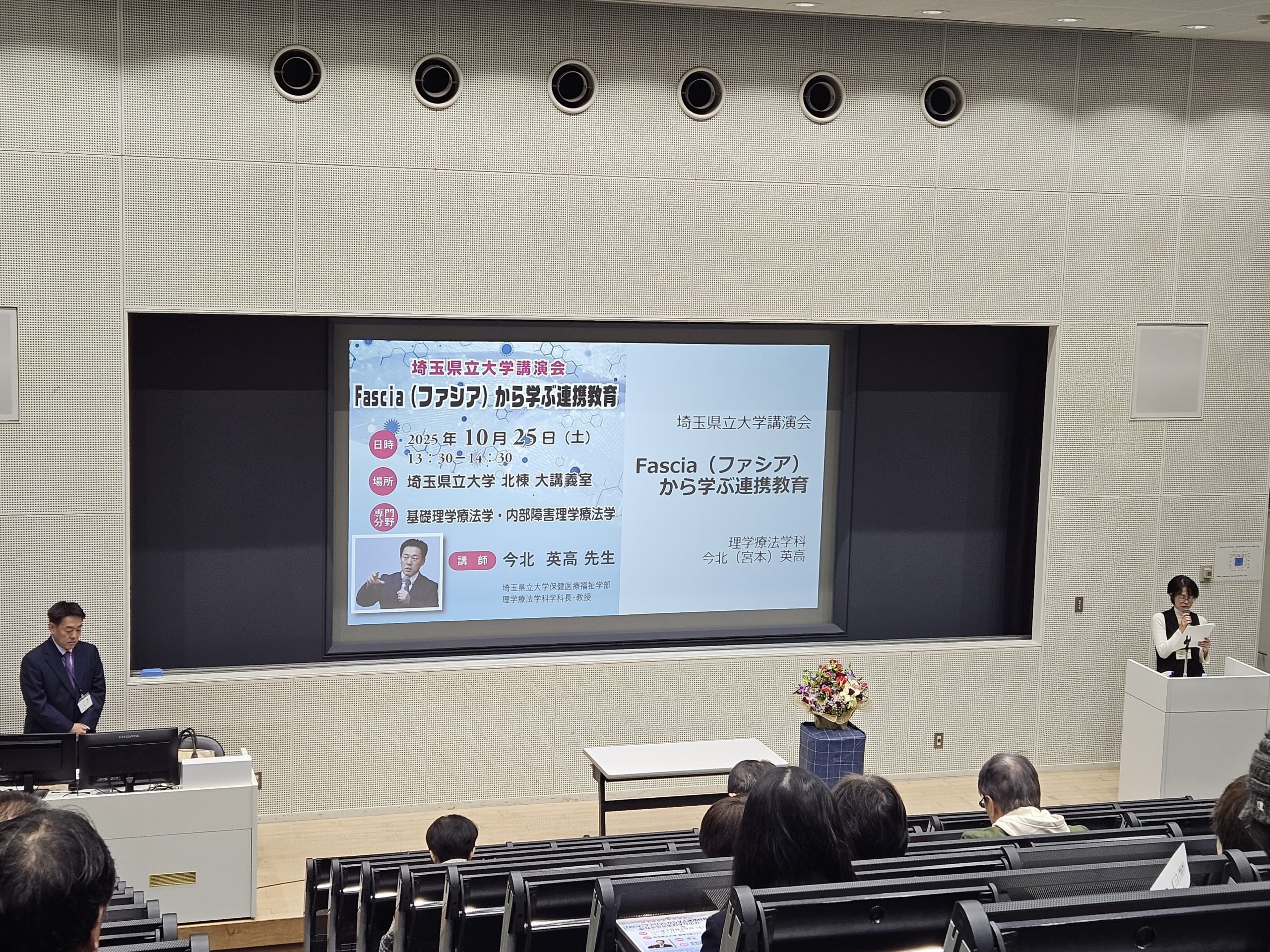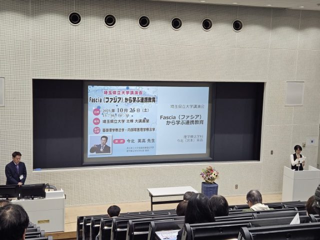 埼玉県立大学講演会 2025年12月18日 最終更新日時 : 2025年12月12日 後援会投稿者 10月25日(土)、本学理学療法学科今北先生による講演会『Fascia(ファシア)から学ぶ連携育育~つながりが生む学びの力~』を開催しました。ファシアという体のつながりを通して学びや人との関わりにも通じる「つながりの力」について考えることができました。